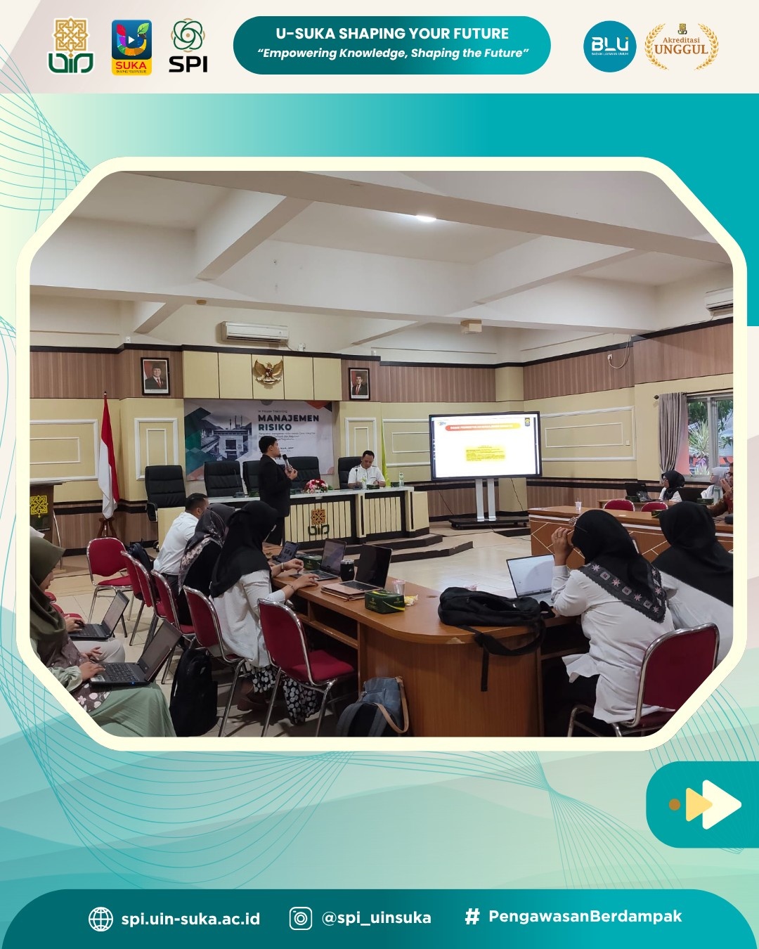 Satuan Pengawasan Internal (SPI) UIN Sunan Kalijaga Yogyakarta menyelenggarakan kegiatan In-House Training Manajemen Risiko dengan tema “Penguatan Manajemen Risiko Menuju Zona Integritas Fakultas Ilmu Tarbiyah dan Keguruan (FITK)” pada Selasa, 22 Oktober 2025. Kegiatan ini berlangsung di Ruang Pertemuan Lantai 1 Fakultas Ilmu Tarbiyah dan Keguruan UIN Sunan Kalijaga Yogyakarta.