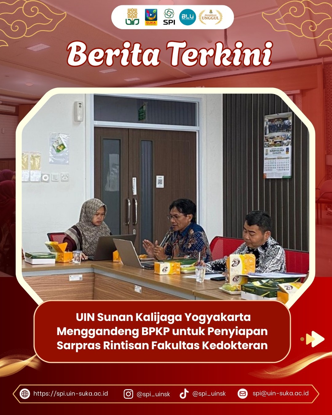 Yogyakarta, 21/11/2025 - Universitas Islam Negeri Sunan Kalijaga Yogyakarta menjalin kerja sama dengan Badan Pengawasan Keuangan dan Pembangunan (BPKP) Kantor Perwakilan Daerah Istimewa Yogyakarta (DIY) dalam rangka mempersiapkan sarana dan prasarana pada Fakultas Kedokteran pada hari Jumat,21 November 2025. Kerja sama ini bertujuan memastikan proses pembangunan fasilitas pendidikan kedokteran di UIN Sunan Kalijaga berjalan sesuai dengan standar yang ditetapkan pemerintah.