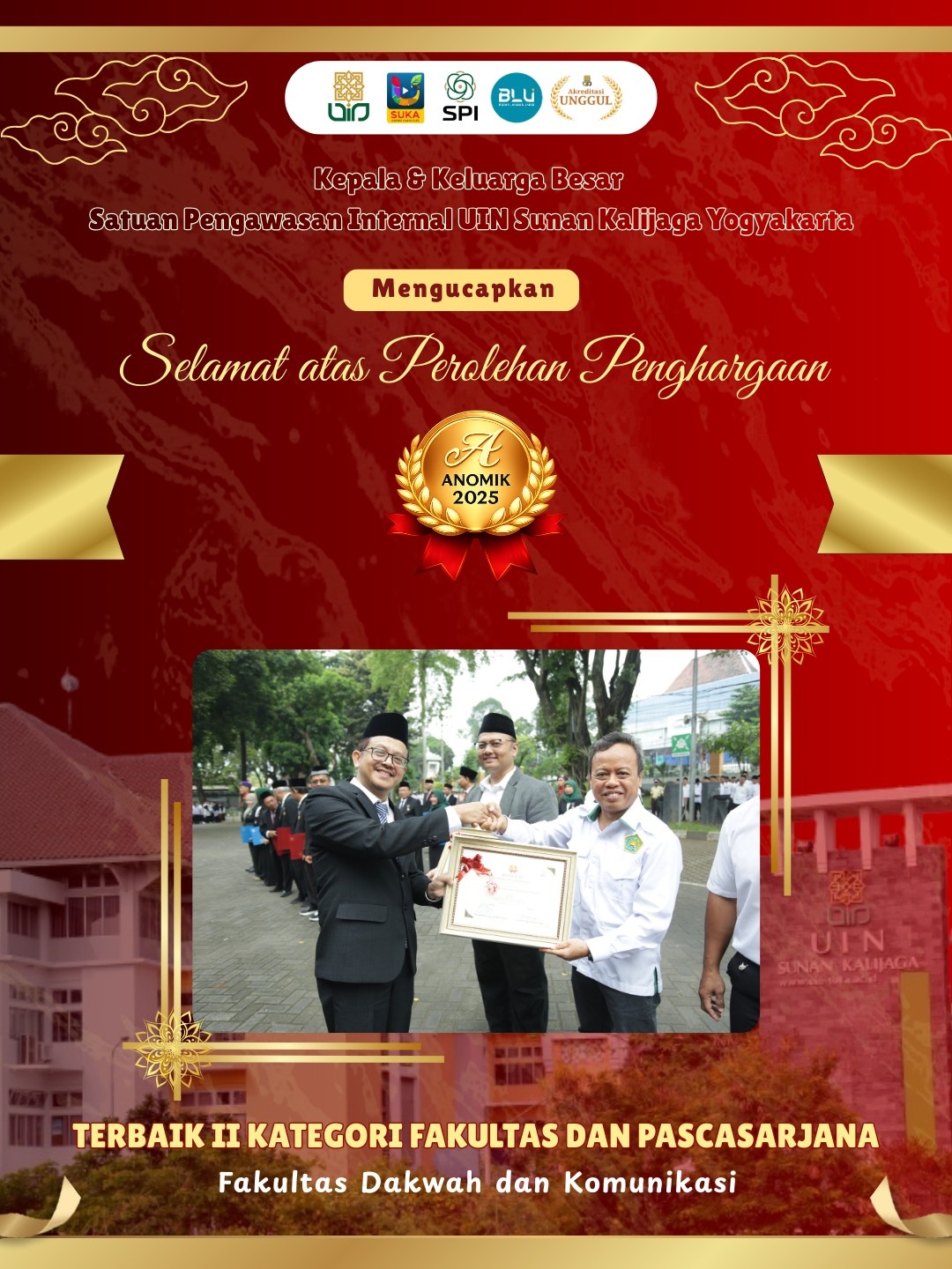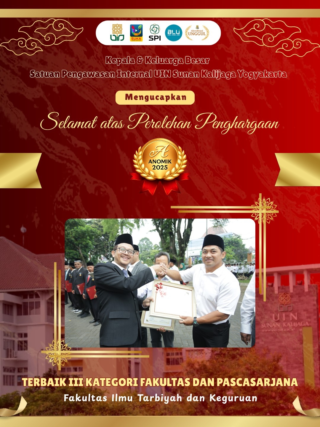 Satuan Pengawasan Internal UIN Sunan Kalijaga Yogyakarta menyampaikan apresiasi dan terima kasih kepada seluruh fakultas dan unit kerja atas kerja sama yang telah terjalin, serta berharap sinergi yang baik ini dapat terus dipertahankan dan ditingkatkan pada masa mendatang. (Fai, Dila, Asti)